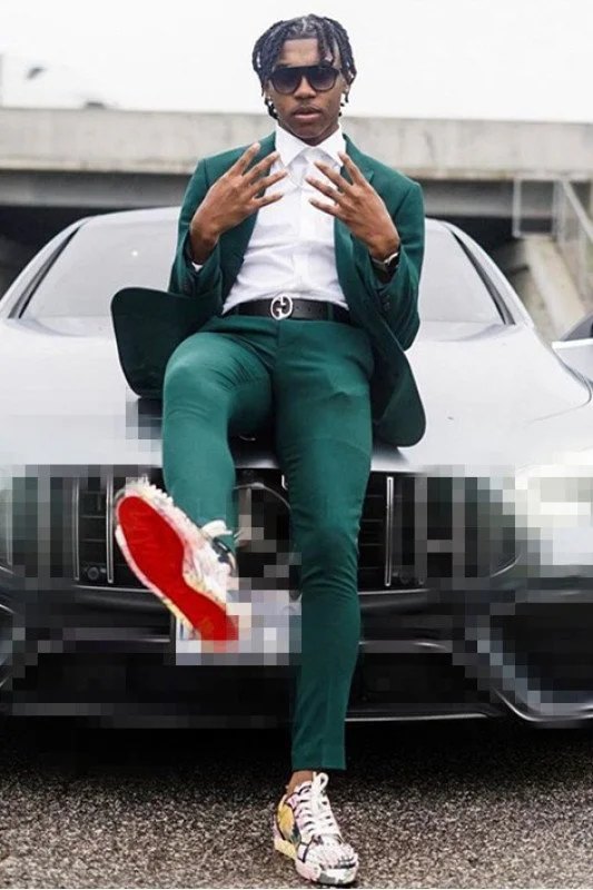 Brayden Chic Dark Green Slim Fit Peaked Lapel Prom Men Suit