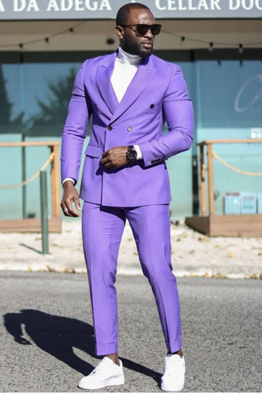 Christian Chic Purple Double Breasted Peaked Lapel Bespoke Men Suit