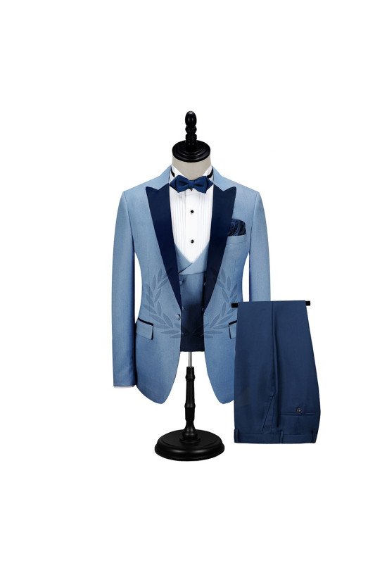 Dark Navy Peak Lapel Men Prom Suits | Fashion Blue Wedding Tuxedos