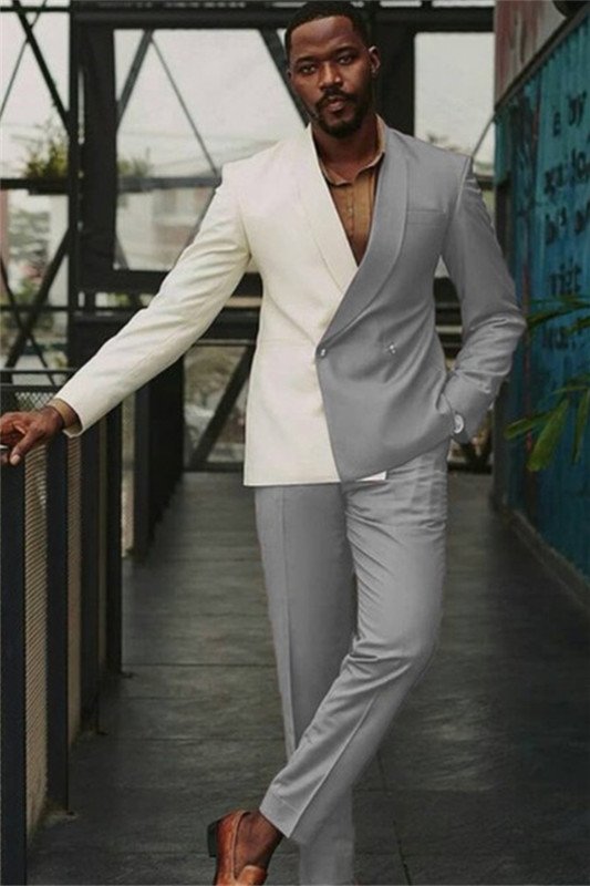 James White and Gray Double Breasted Slim Men Suit for Prom