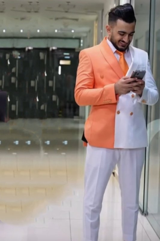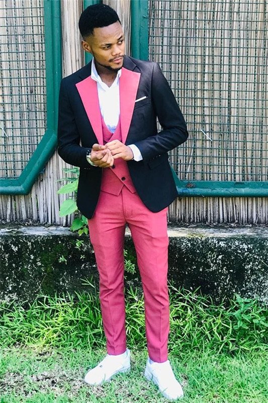 3. Color-blocked suits: Suits featuring contrasting colors on the collar, cuffs, or hem, such as a black suit with a white lapel, or a navy suit with gray cuffs. They exude a sense of design without requiring complicated styling. Perfect for young men seeking individuality, they can be easily paired with a simple white T-shirt and white sneakers for an effortlessly chic look.