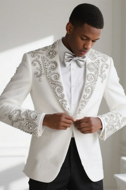 Men's appliques suits are suitable for informal or semi-formal creative and social occasions, but not for traditional business or serious formal occasions.